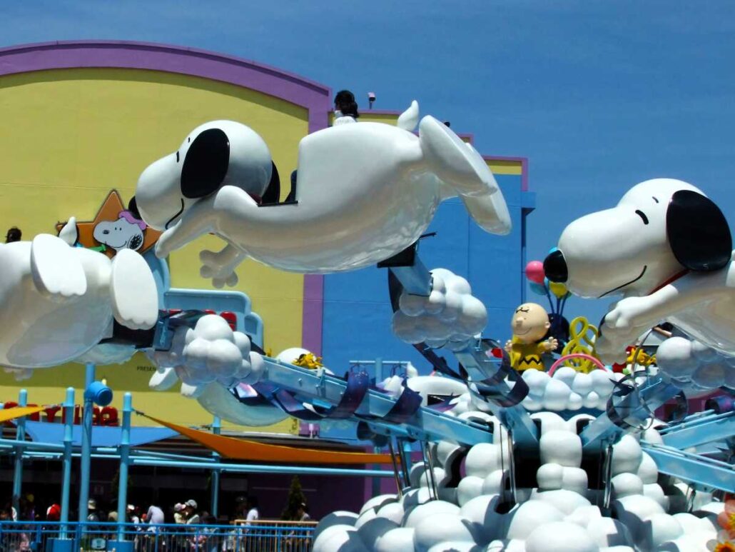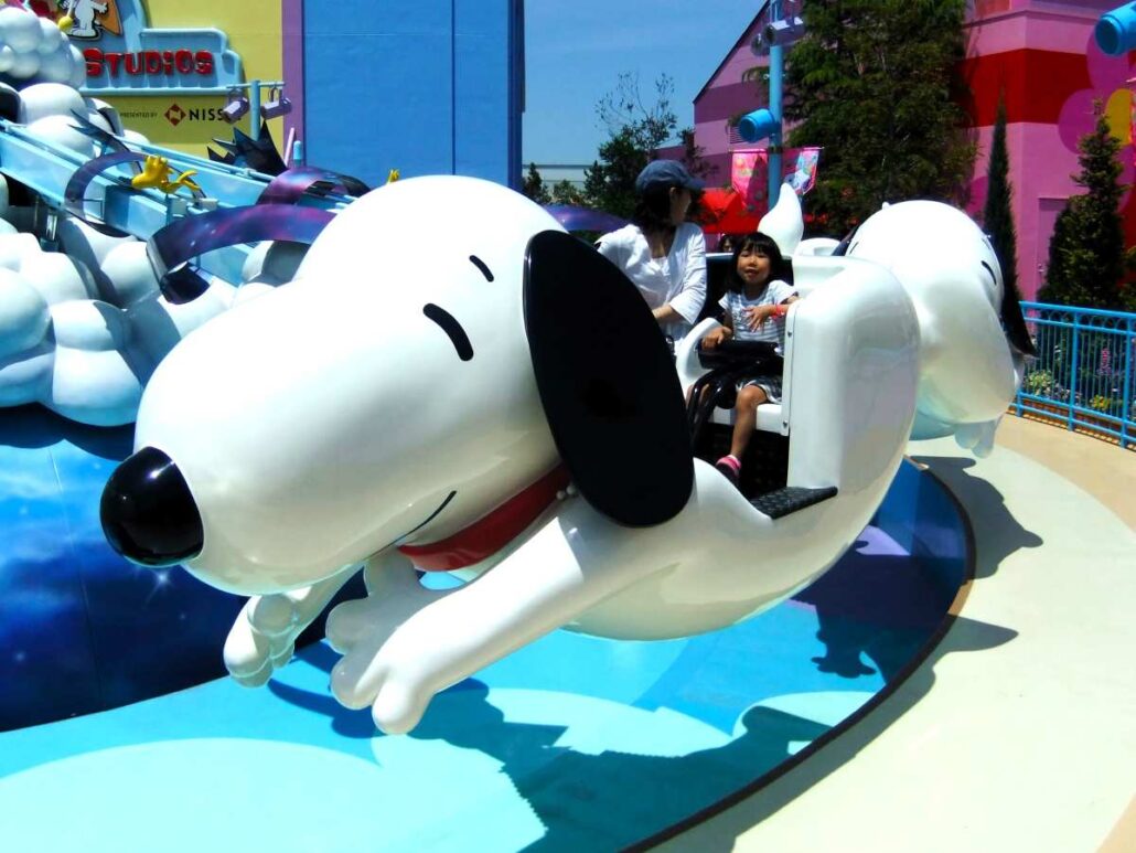 Familieattracties: Mario Kart: Koopa’s Challenge (interactieve hightech darkride) – Harry Potter and the Forbidden Journey (spectaculaire darkride) – Snoopy’s Great Race en Flight of the Hippogriff (familieachtbanen) – Jaws (boottochtje met onverwacht einde) – Yoshi’s Adventure (darkride voor de hele familie) – Despicable Me: Minion Mayhem, Sesame Street 4-D Movie Magic en Shrek’s 4-D Adventure (vierdimensionale films) – Villain-Con Minion Blast (interactief schietspel) – Hello Kitty’s Cupcake Dream, The Flying Snoopy, Elmo’s Bubble Bubble (draaimolens) – Elmo’s Little Drive (verkeerstuin met kleine autootjes)