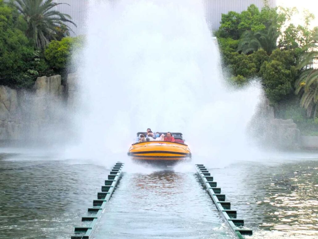 Snelle attracties: The Flying Dinosaur (flying coaster) – Hollywood Dream, The Ride en Hollywood Dream, The Ride: Backdrop (achtbaan met naar keuze een rit voor- of achteruit) – Jurassic Park, The Ride (wildwaterbaan) – Space Fantasy (donkere, draaiende achtbaan) – Mine Cart Madness (doldwaze rit in een losgeslagen mijnkarretje)