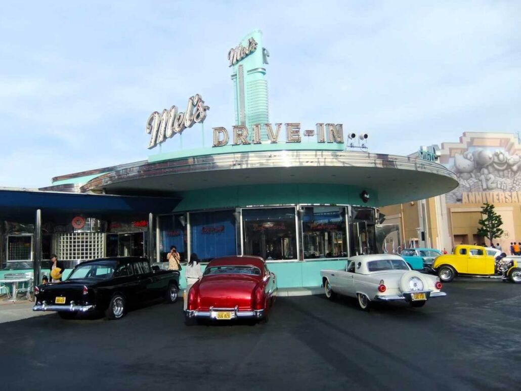 Kinopio’s Cafe (Super Mario-restaurant met Super Mushroom Pizza Bowls) – Three Broomsticks en Leaky Cauldron (klassieke Britse gerechten, in The Wizarding World of Harry Potter) – Finnegan’s Bar & Grill (Amerikaanse en Ierse gerechten in een ongedwongen pub, in New York) – Lombard’s Landing (rustig seafood-restaurant aan het water, in San Francisco) – Discovery Restaurant (fast food in Jurassic Park) – Mel’s Drive-In (Amerikaanse diner uit de jaren ’50) – Minion Happy Kitchen (hamburgers, curry- en kipgerechten en desserts, allemaal met een Minion-sausje) – Snoopy’s Backlot Cafe (snacks en lichte maaltijden in Universal Wonderland) – Saido (Japans restaurant, net buiten het park in CityWalk)