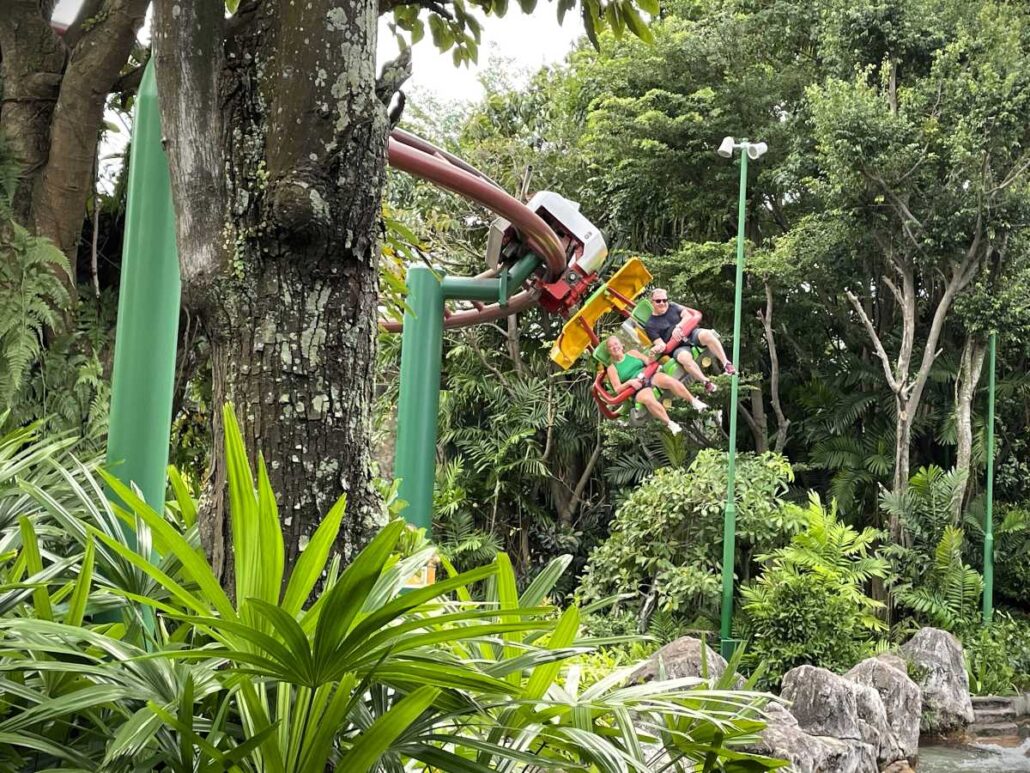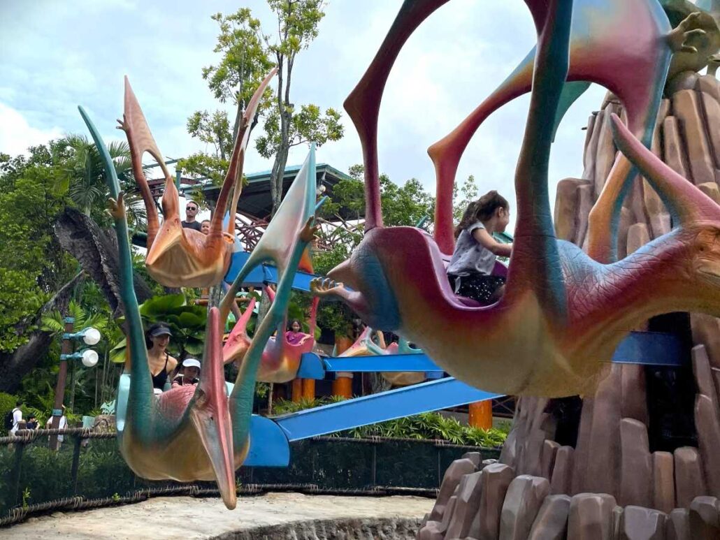 In het kleine themagebied Ancient Egypt staat de overdekte achtbaan The Revenge of the Mummy, waar de treintjes langs vuurbollen, zwermen mestkevers en strijdende mummies razen. Meteen achter het droge Egypte ligt het groene themagebied The Lost World dat in het teken staat van dinosaurussen. In de ronde boten van wildwaterrivier Jurassic Park Rapids Adventure worden de schepelingen gegarandeerd nat. Het tochtje eindigt in een donkere tunnel waar de vlotten met een lift tot bijna dertien meter hoogte worden gebracht. Vandaaruit schieten de vaartuigen over een waterval omlaag, een vloedgolf in die alle gasten een nat pak bezorgt. De bijzondere achtbaan Canopy Flyer moet een vlucht op de vleugels van een pterodactylus over Jurassic Park nabootsen. Wie een tochtje wil maken moet vooral lang wachten, want de capaciteit van deze attractie is erg laag.