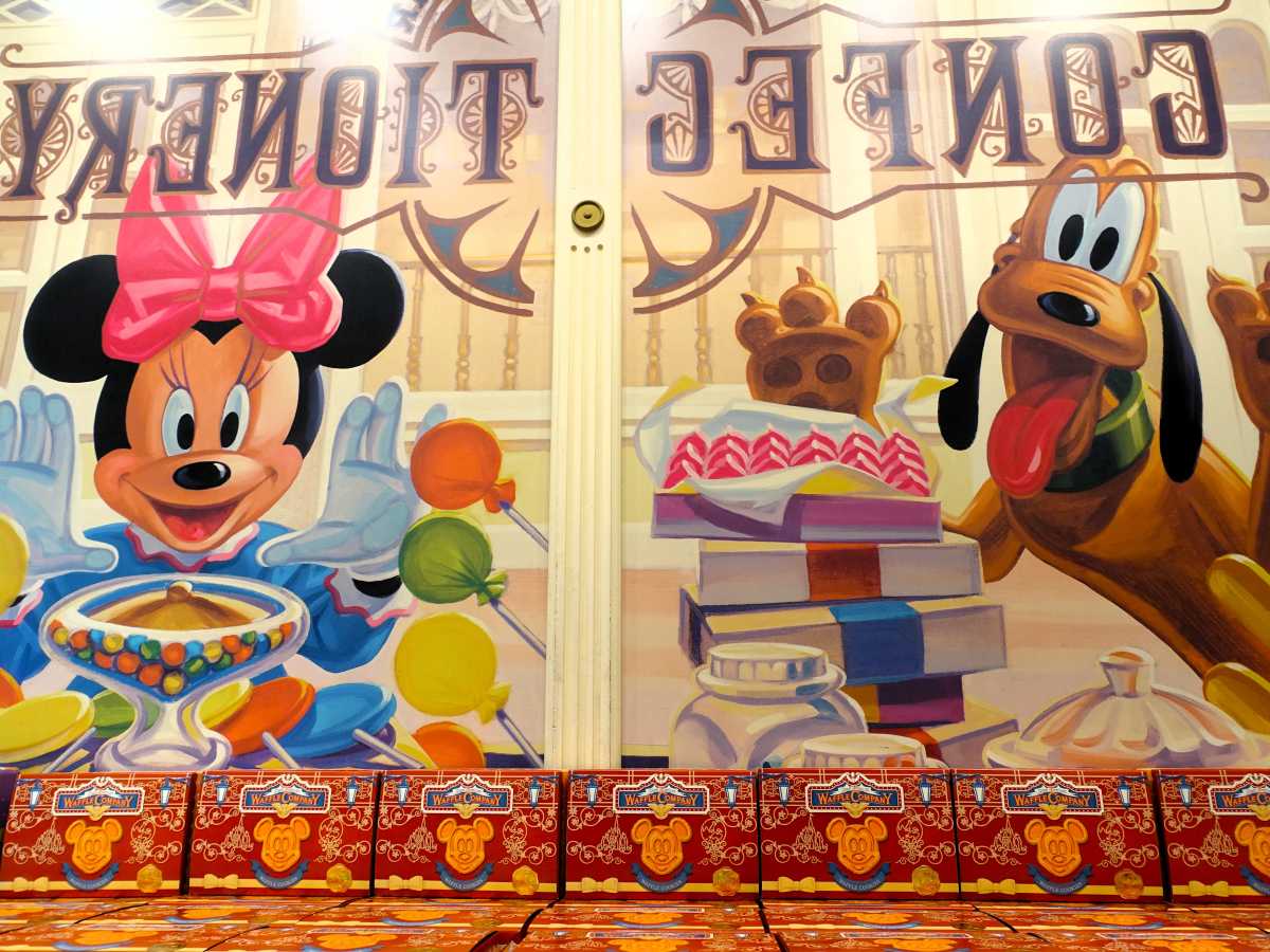 De koekjes in de Disney-parken zijn prachtig verpakt in kleurrijke blikken en trommels. Bij elk schap staat één opengewerkte verpakking, zodat kopers kunnen zien wat ze mee naar huis nemen zonder de trommels open te hoeven maken. Ze zien hoe prachtig de koekjes gearrangeerd zijn, haast als een kunstwerk. De lekkernijtjes hebben allemaal een Disney-opdruk of de vorm van het hoofd van Mickey, Minnie of de in Japan immens populaire beer Duffy. De naar stripfiguren gevormde koekjes zijn varianten op de traditionele Hato Sabure, boterkoekjes in de vorm een vogel die sinds 1887 in Japan verkocht worden.