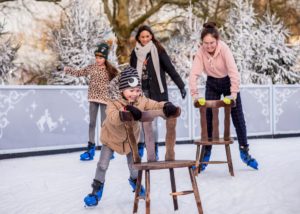 Geniet van de winter in een pretpark, met kampvuren, besneeuwde kerstbomen, sfeervol entertainment, heel veel lichtjes en verlichte attracties.